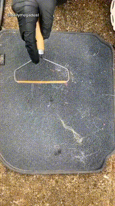 A: The scraper uses a textured edge to create friction, unhooking stubborn fur from fabric fibers and gathering it into a neat, easy-to-grab clump in a single swipe!